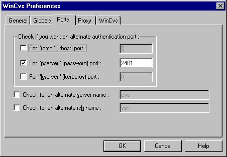 To start configuring WinCVS, click on Admin at the top of the screen and then Preferences. This should get you: